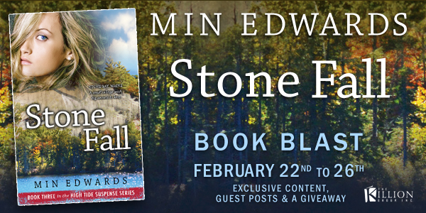 Join Min Edwards and the Killion Group as we celebrate the release of Stone Fall with this 25 stop Book Blast from February 22nd to 26th. Included in this book blast is exclusive content, guest posts from Min, a spotlight of the book, and a giveaway. One GRAND PRIZE WINNER will receive a digital copy of their choice of Stone Cold, Stone Bay, or Stone Heart!